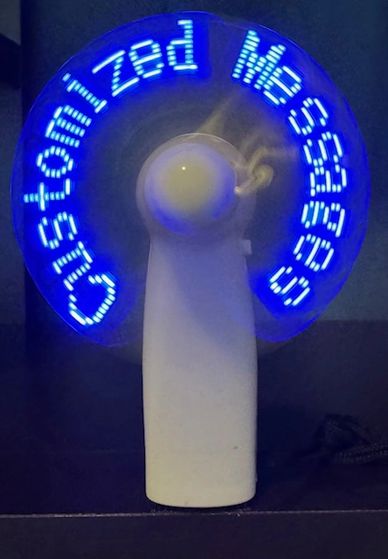Really cool customized message LED mini fans. A great gift for yourself a friend or loved one. You can have your customized message be up to 18 characters long including spaces. You can have up to 3 different messages.